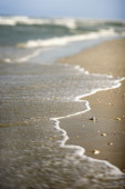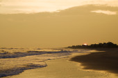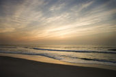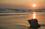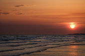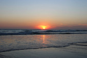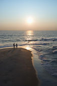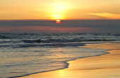 Plaża o zachodzie słońca.