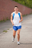 Full isolated picture of a caucasian running woman