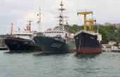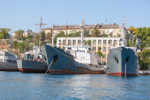 Statki wojenne w zatoce, Sewastopol, Krym, Ukraina