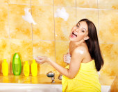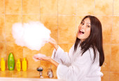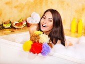 kobieta wziąć kąpiel bąbelkowa.