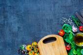 Healthy salad on cutting board