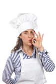 szczęśliwy kucharz atrakcyjna kobieta staje się chude palce