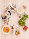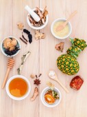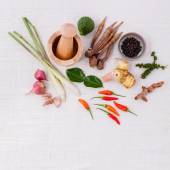Composition of Mixed spices and herbs background cinnamon stick