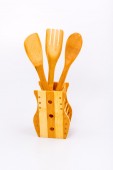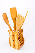 zestaw wykonana z bambusa, na białym tle naczynia kuchenne