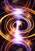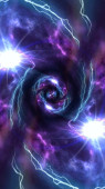 Głośnik muzyki w kosmosie. Kosmiczna przestrzeń i gwiazdy, abstrakcyjne kosmiczne tło, muzyka kosmiczna, koncepcja muzyki.