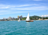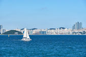 Yacht sailing on a background of Haeundae