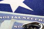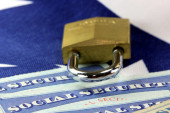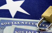 Kłódka i zabezpieczenia społecznego karty - kradzież tożsamości i koncepcji ochrony tożsamości