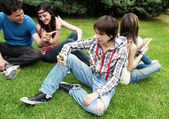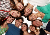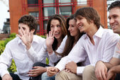 szczęśliwy grupa przyjaciół uśmiechający się na zewnątrz