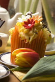wiosna babeczki ozdobione płatki kwiatów z tulipany