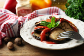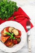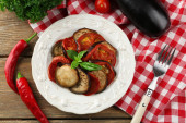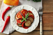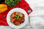Zdjęcie "Ratatuj na talerz, na tle" może być wykorzystywane do celów osobistych i komercyjnych zgodnie z warunkami zakupionej licencji Royalty-free. Obraz jest dostępny do pobrania w jakości wysokiej rozdzielczości do 5760x3840.