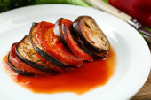 Zdjęcie "Ratatuj na talerz, na tle" może być wykorzystywane do celów osobistych i komercyjnych zgodnie z warunkami zakupionej licencji Royalty-free. Obraz jest dostępny do pobrania w jakości wysokiej rozdzielczości do 5760x3840.