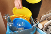 Kobieta sortowania różnych odpadów