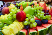 Zdjęcie "Asortyment soczyste owoce na drewnianym stole," może być wykorzystywane do celów osobistych i komercyjnych zgodnie z warunkami zakupionej licencji Royalty-free. Obraz jest dostępny do pobrania w jakości wysokiej rozdzielczości do 5760x3840.