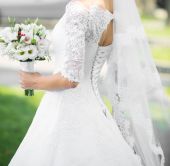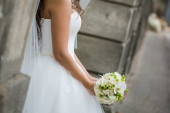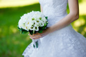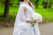 Panny młodej w sukni ślubnej z bukiet przed ślub