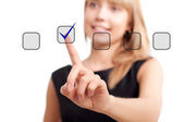 młoda kobieta biznesu strony z pióra zaznacz pola wyboru. ręce o