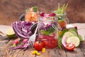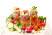 Zdjęcie "Sałatka wegetariańska w słoiku" może być wykorzystywane do celów osobistych i komercyjnych zgodnie z warunkami zakupionej licencji Royalty-free. Obraz jest dostępny do pobrania w jakości wysokiej rozdzielczości do 5760x3840.