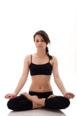 ładny blond dziewczynka siedzieć w pozie asana jogi lotos