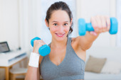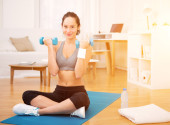 Zdjęcie "Młoda atrakcyjna dziewczyna robi ćwiczenia w domu " może być wykorzystywane do celów osobistych i komercyjnych zgodnie z warunkami zakupionej licencji Royalty-free. Obraz jest dostępny do pobrania w jakości wysokiej rozdzielczości do 5760x3840.