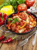 Zdjęcie "Kurczak w sosie pomidorowym i pieprz " może być wykorzystywane do celów osobistych i komercyjnych zgodnie z warunkami zakupionej licencji Royalty-free. Obraz jest dostępny do pobrania w jakości wysokiej rozdzielczości do 5760x3840.