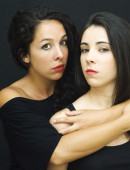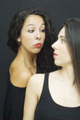 Portret dwóch pięknych kobiet, jeden z nich dotyczy jej usta do oth