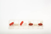 tabletki w Organizator otwarty tabletki. na białym tle