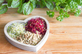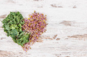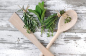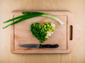 Świeże zioła i deska do krojenia serca na czarnym tle