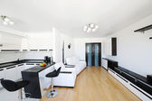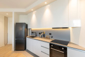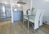 Zdjęcie "Jadalnia i kuchnia w nowoczesnym mieszkaniu" może być wykorzystywane do celów osobistych i komercyjnych zgodnie z warunkami zakupionej licencji Royalty-free. Obraz jest dostępny do pobrania w jakości wysokiej rozdzielczości do 5760x3840.