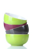 jasne puste miski na białym tle