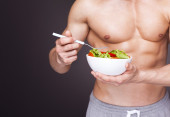 Zdjęcie "Muskularny mężczyzna trzyma miseczka sałatki" może być wykorzystywane do celów osobistych i komercyjnych zgodnie z warunkami zakupionej licencji Royalty-free. Obraz jest dostępny do pobrania w jakości wysokiej rozdzielczości do 5760x3840.