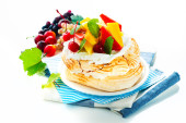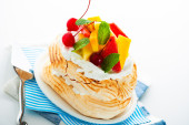 Pavlova z świeże owoce (mango, ananas, arbuz, wiśnia)