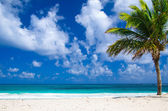 Two palm trees on a tropical beach, Bavaro, Punta Cana, Domini