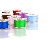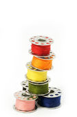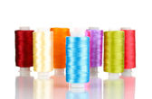 metalowe szpule nici na białym tle