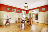 wnętrz jadalnia z dużym stołem czarny.