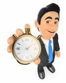 biznesmen 3D działa przeciwko stoper. Pojęcie czasu
