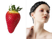kwiatowy makijaż, ona zwróciła się o trzy czwarte