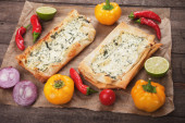 Zdjęcie "Phyllo ciasto z serem i szpinakiem" może być wykorzystywane do celów osobistych i komercyjnych zgodnie z warunkami zakupionej licencji Royalty-free. Obraz jest dostępny do pobrania w jakości wysokiej rozdzielczości do 5760x3840.