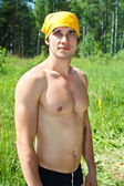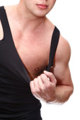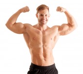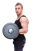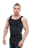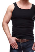jeden mężczyzna przystojny kaukaski musculan w czarny t-shirt