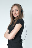 Seksowny szczęśliwy uśmiechający się Brunet dziewczyna w białej koszuli. widok z przodu. Kolekcja portretów
