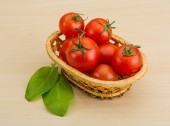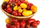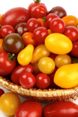 wiele różnych ekologiczne pomidory w koszu z soli i pieprzu