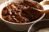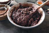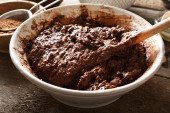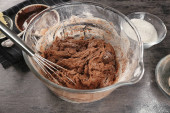 Przygotowanie ciasta czekoladowe ciasto na stole z bliska