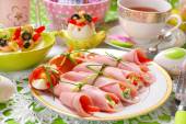 półmisek mięsa peklowane, szynka, salami na stole eater i
