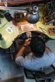 Zdjęcie "Goldsmith pracuje nad swoją ława" może być wykorzystywane do celów osobistych i komercyjnych zgodnie z warunkami zakupionej licencji Royalty-free. Obraz jest dostępny do pobrania w jakości wysokiej rozdzielczości do 5760x3840.