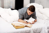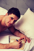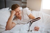 Zdjęcie "przystojny mężczyzna leżąc w łóżku." może być wykorzystywane do celów osobistych i komercyjnych zgodnie z warunkami zakupionej licencji Royalty-free. Obraz jest dostępny do pobrania w jakości wysokiej rozdzielczości do 5760x3840.