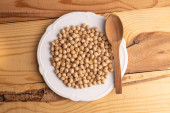 Zdjęcie "Suche i niegotowane ciecierzycy w łyżką na drewniane tła" może być wykorzystywane do celów osobistych i komercyjnych zgodnie z warunkami zakupionej licencji Royalty-free. Obraz jest dostępny do pobrania w jakości wysokiej rozdzielczości do 5760x3840.