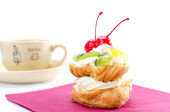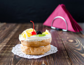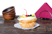 Zdjęcie "Choux ciast z owocami na serwetki bordo" może być wykorzystywane do celów osobistych i komercyjnych zgodnie z warunkami zakupionej licencji Royalty-free. Obraz jest dostępny do pobrania w jakości wysokiej rozdzielczości do 5760x3840.