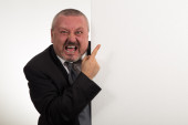 człowiek biznesu wyświetlanie Dodaj baner na białym tle nad białym tle