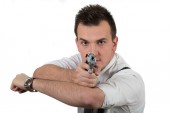 Zdjęcie "Połowie wieku biznesmen wskazujący pistolet" może być wykorzystywane do celów osobistych i komercyjnych zgodnie z warunkami zakupionej licencji Royalty-free. Obraz jest dostępny do pobrania w jakości wysokiej rozdzielczości do 5760x3840.