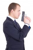 Młody człowiek wskazując broń