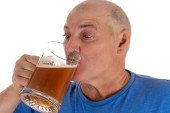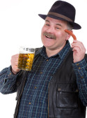 osoby w podeszłym wieku człowiek gospodarstwa piwa brzuch i kiełbasa