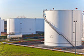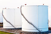biały zbiornik w zbiorniku gospodarstwa z niebieskim niebem